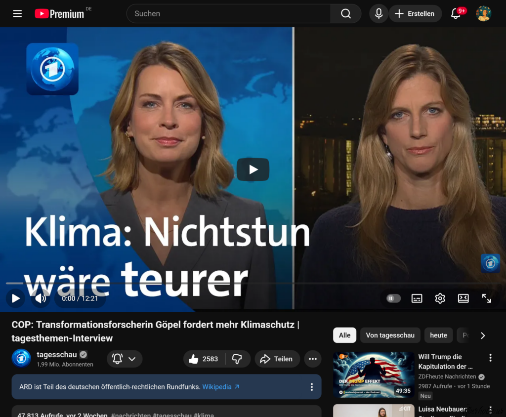 9. ARD programme „KlimaZeit“ (Tagesschau, 21 November 2025)
