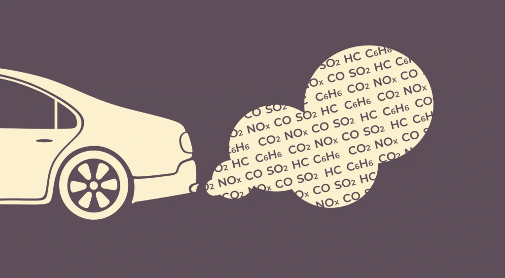 Abbildung: Fahrzeugemissionen, Umweltverschmutzung, Luftverschmutzung, Auspuff. Illustration. – ALEKSANDR STRELNIKOV / iStock by GettyImages